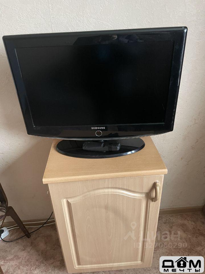 В комнате находится диван, телевизор, холодильник, шкаф все видно на фото
